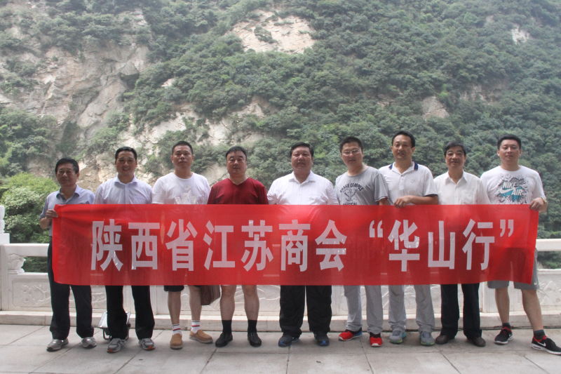 2016年8月10日,由陜西省江蘇商會會長、副會長、理事及秘書處等一行16人組成的考察團,前往華陰市舉行陜西省江蘇商會華山行登山活動。活動是應渭南市江蘇商會會長張錫林的邀請,活動前考察團一行參觀訪問了相關基地,并與在渭南的江蘇商會代表舉行座談。