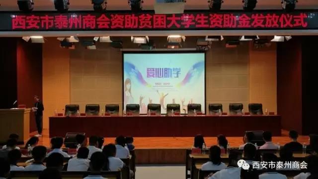 8月25日,西安市泰州商會資助咸陽市貧困大學生資助金發放儀式在旬邑縣中學舉行。